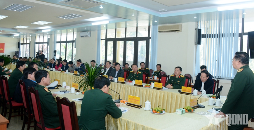Qua nghe báo cáo của lãnh đạo địa phương và ý kiến bổ sung cùng các kiến nghị, đề xuất của lãnh đạo thành phố Hải Phòng, Bộ CHQS TP Hải Phòng, thay mặt đoàn công tác, Đại tướng Nguyễn Trọng Nghĩa phát biểu kết luận buổi làm việc.
