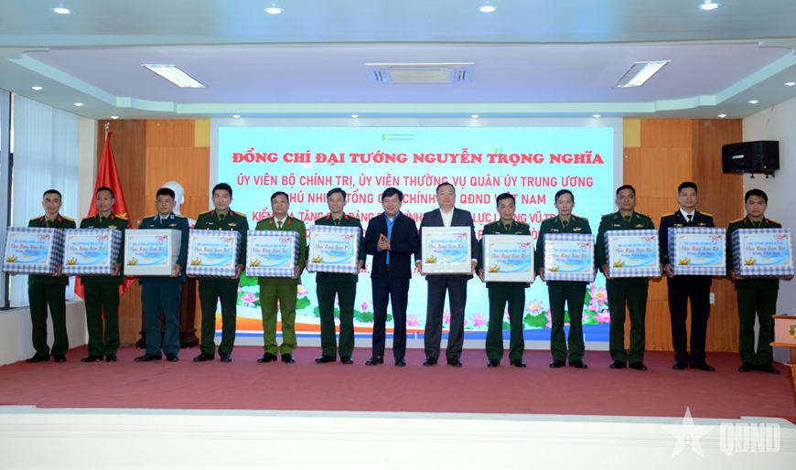 | Đại tướng Nguyễn Trọng Nghĩa trao quà Tết của Quân ủy Trung ương, Bộ Quốc phòng tặng cán bộ, nhân viên, chiến sĩ, người lao động Binh đoàn 19. |