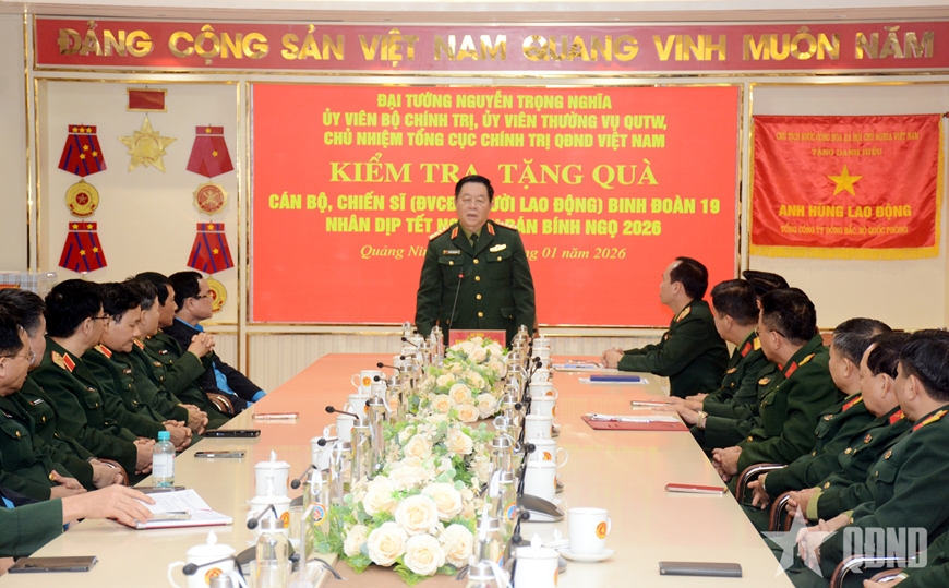 Chiều cùng ngày, Đại tướng Nguyễn Trọng Nghĩa cùng đoàn công tác Quân ủy Trung ương, Bộ Quốc phòng đã thăm, kiểm tra, tặng quà Tết tại Binh đoàn 19 (Bộ Quốc phòng).