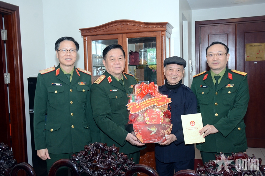 Đại tướng Nguyễn Trọng Nghĩa trân trọng trao quà của Quân ủy Trung ương, Bộ Quốc phòng, Tổng cục Chính trị và gửi tới Đại tướng Phạm Văn Trà lời chúc mừng năm mới sức khỏe, hạnh phúc, trường thọ, gia đình an khang, thịnh vượng.