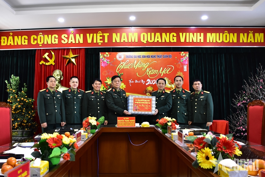 Nhân dịp Tết Nguyên đán, Đại tướng Nguyễn Trọng Nghĩa chúc cán bộ, giảng viên, học viên Trường Đại học Văn hóa Nghệ thuật Quân đội đón Tết vui tươi, lành mạnh, an toàn, tiết kiệm; đồng thời yêu cầu Nhà trường duy trì nghiêm chế độ trực sẵn sàng chiến đấu, chăm lo tốt đời sống vật chất, tinh thần cho cán bộ, giảng viên, học viên; tổ chức thăm hỏi các đối tượng chính sách, cán bộ nghỉ hưu; bảo đảm tuyệt đối an toàn mọi mặt.