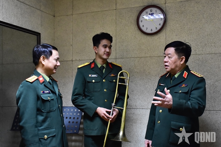 Đại tướng Nguyễn Trọng Nghĩa cùng đoàn công tác và đại diện Trường Đại học Văn hóa Nghệ thuật Quân đội.