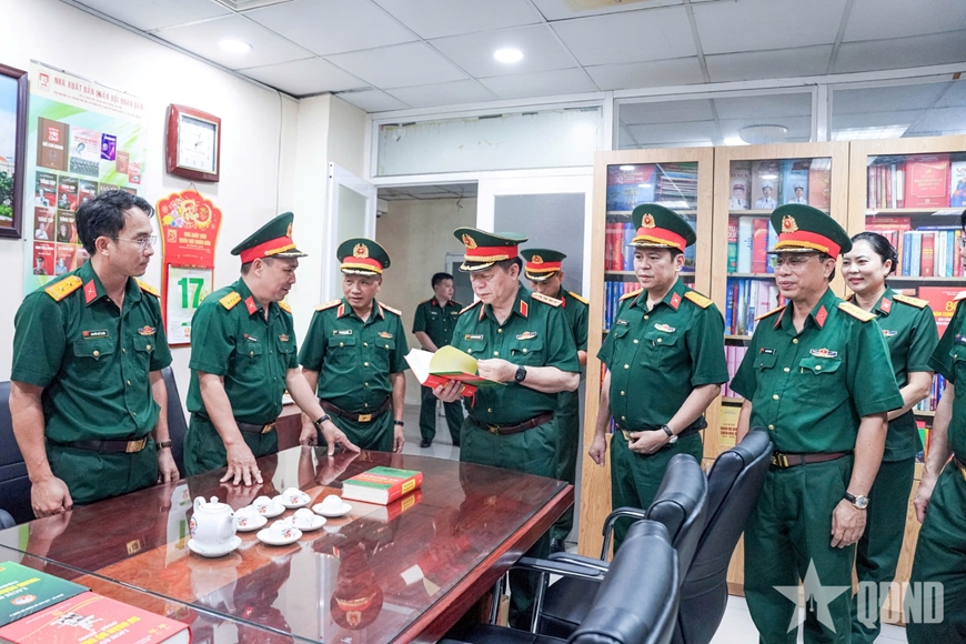 Đại tướng Nguyễn Trọng Nghĩa và đoàn công tác thăm Ban đại diện Nhà xuất bản QĐND tại TP Hồ Chí Minh. Ảnh: NGUYỄN TRUNG TRỰC