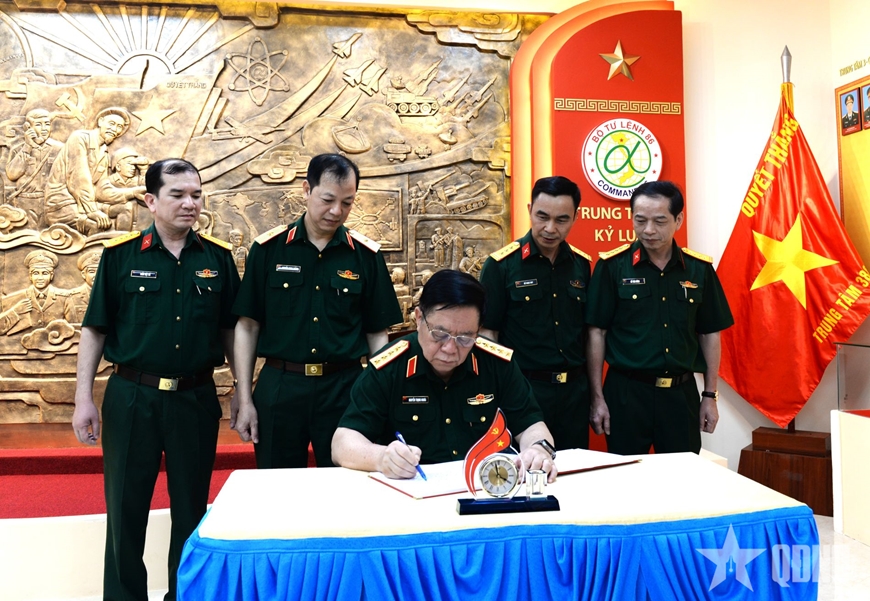 Đại tướng Nguyễn Trọng Nghĩa ghi Sổ truyền thống Trung tâm 386.