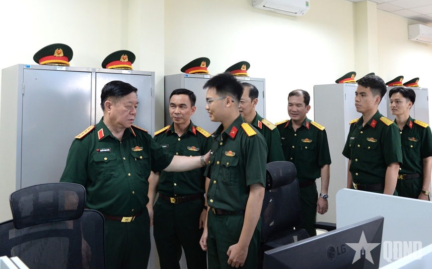 | Đại tướng Nguyễn Trọng Nghĩa kiểm tra, động viên cán bộ, nhân viên Đội 2 (Cụm 31, Trung tâm 386) thực hiện nhiệm vụ. |