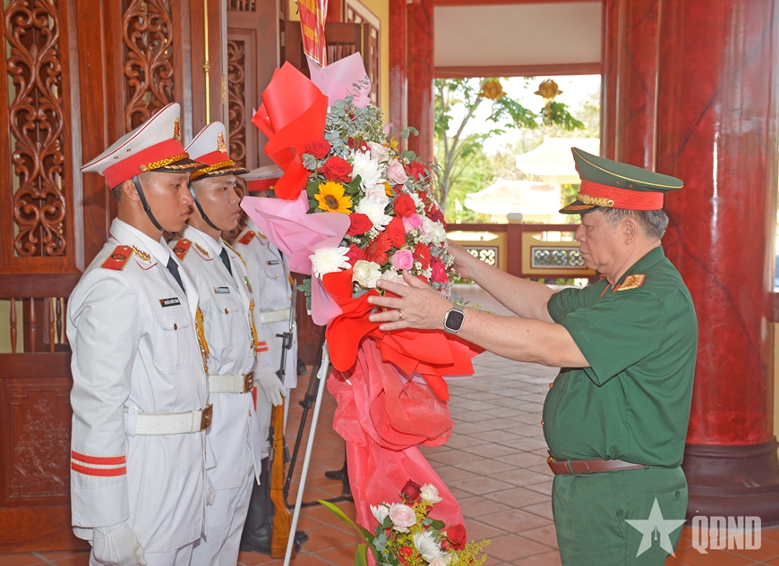 Cùng ngày, Đại tướng Nguyễn Trọng Nghĩa và đoàn công tác đã đến dâng hoa, dâng hương tại Đền thờ Anh hùng liệt sĩ Chiến khu Rừng Sác.