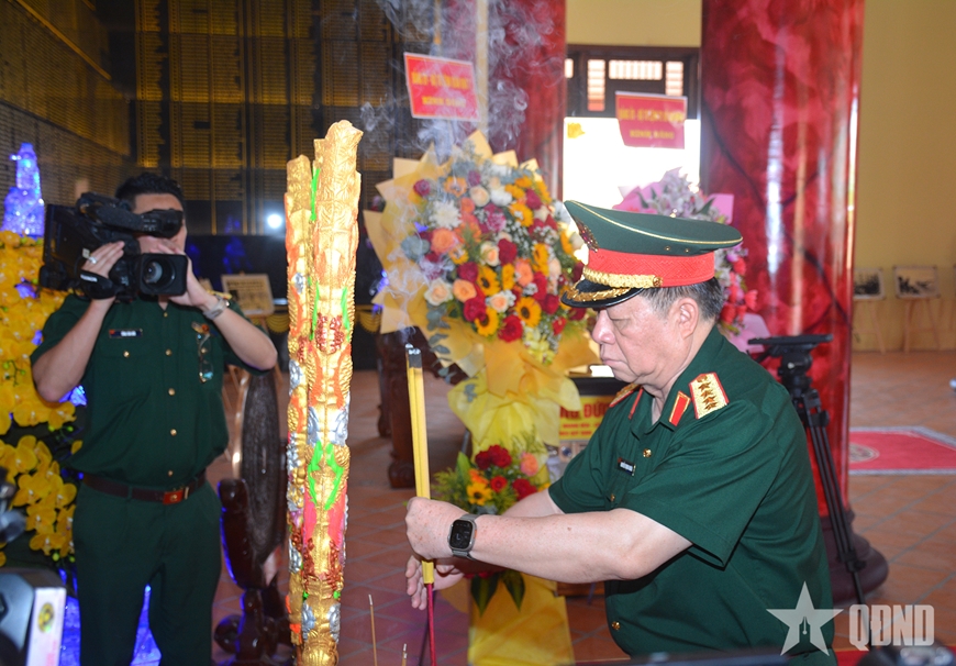 | Đại tướng Nguyễn Trọng Nghĩa thắp nhang tri ân các Anh hùng liệt sĩ. |