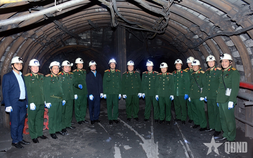 | Đại tướng Nguyễn Trọng Nghĩa trực tiếp xuống hầm lò để thăm, kiểm tra công tác bảo đảm an toàn tại các khu kỹ thuật dưới độ sâu 320 mét. |