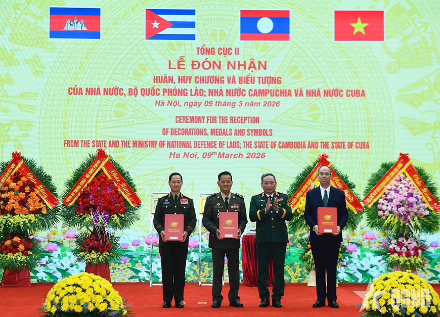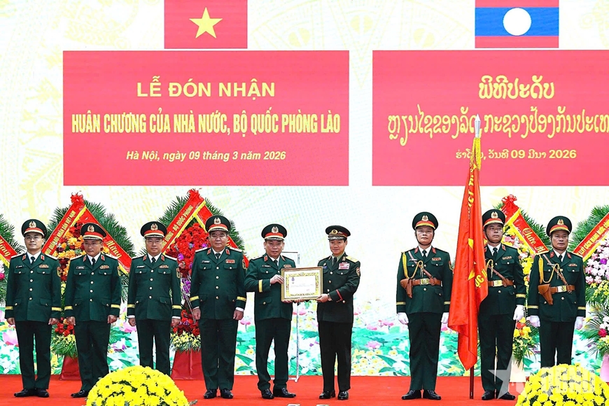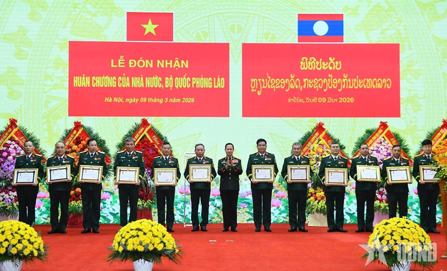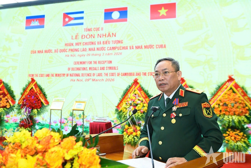 | Bộ trưởng Bộ Quốc phòng Lào trao Huân chương tặng các tập thể, cá nhân thuộc Tổng cục II. |