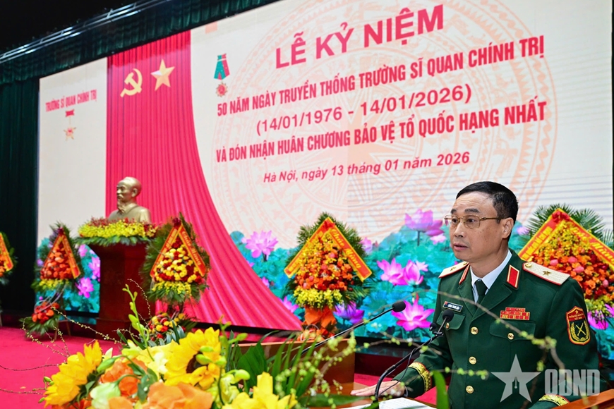 Phát biểu diễn văn tại buổi lễ, Thiếu tướng, PGS, TS Lương Thanh Hân, Hiệu trưởng Trường Sĩ quan Chính trị cho biết: Ngày 30-4-1975, Chiến dịch Hồ Chí Minh lịch sử toàn thắng, miền Nam giải phóng, đất nước thống nhất, cả nước đi lên chủ nghĩa xã hội. Để đáp ứng đòi hỏi khách quan, cấp thiết của sự nghiệp xây dựng Quân đội trong tình hình mới, ngày 14-1-1976, Trường Sĩ quan Chính trị được thành lập, có nhiệm vụ đào tạo chính trị viên đại đội cho toàn quân theo Quyết định số 18 của Bộ trưởng Bộ Quốc phòng.