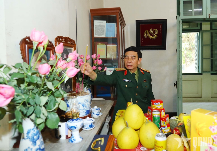 Đại tướng Phan Văn Giang và đoàn công tác đã tới thăm gia đình, thành kính dâng hương, dâng hoa tưởng nhớ, tri ân nguyên Tổng Bí thư Lê Khả Phiêu, nguyên Chủ nhiệm Tổng cục Chính trị; nguyên Chủ tịch nước Lê Đức Anh, nguyên Bộ trưởng Bộ Quốc phòng; các đồng chí nguyên Bộ trưởng Bộ Quốc phòng: Đại tướng Võ Nguyên Giáp, Đại tướng Văn Tiến Dũng, Đại tướng Đoàn Khuê, Đại tướng Phùng Quang Thanh; các đồng chí nguyên Chủ nhiệm Tổng cục Chính trị: Đại tướng Nguyễn Chí Thanh và Đại tướng Chu Huy Mân; các đồng chí nguyên Tổng Tham mưu trưởng, nguyên Thứ trưởng Bộ Quốc phòng: Đại tướng Lê Trọng Tấn, Đại tướng Hoàng Văn Thái; Thượng tướng Nguyễn Chí Vịnh, nguyên Thứ trưởng Bộ Quốc phòng.