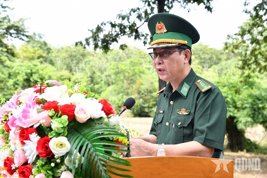 Đại tá Nguyễn Văn Lĩnh, Chỉ huy trưởng Ban chỉ huy Bộ đội Biên phòng tỉnh Đắk Lắk phát biểu tại lễ khởi công.
