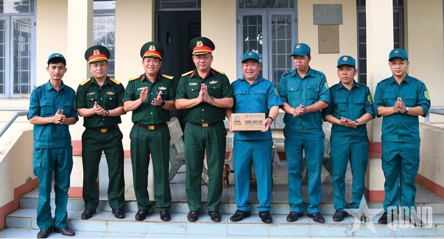 Đại tá Võ Văn Bá, Phó tham mưu trưởng Quân khu 5 thăm, tặng quà Ban CHQS phường Tân An, tỉnh Đắk Lắk.