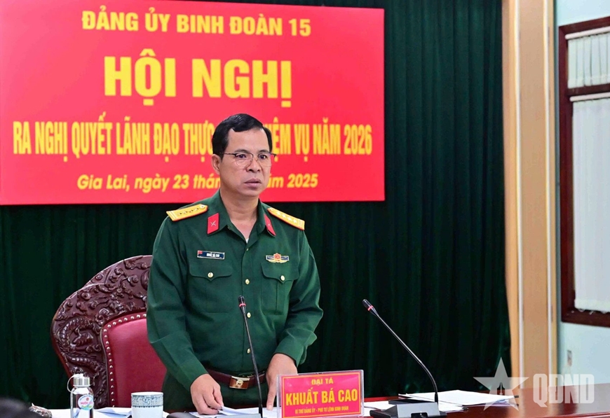 Phát biểu kết luận hội nghị, Đại tá Khuất Bá Cao yêu cầu các đảng ủy, tổ chức đảng cơ sở quán triệt sâu sắc Nghị quyết của Đảng ủy Binh đoàn lãnh đạo thực hiện nhiệm vụ năm 2026; kịp thời ban hành nghị quyết lãnh đạo của cấp mình. Đồng thời, cấp ủy, chỉ huy các cấp cần nhanh chóng cụ thể hóa nghị quyết vào chương trình, kế hoạch hành động sát với thực tiễn từng cơ quan, đơn vị; phát huy tinh thần đoàn kết, chủ động, sáng tạo, quyết tâm hoàn thành thắng lợi các mục tiêu, nhiệm vụ đã đề ra, tạo nền tảng vững chắc để Binh đoàn 15 bước vào giai đoạn phát triển mới với chất lượng, hiệu quả cao hơn.