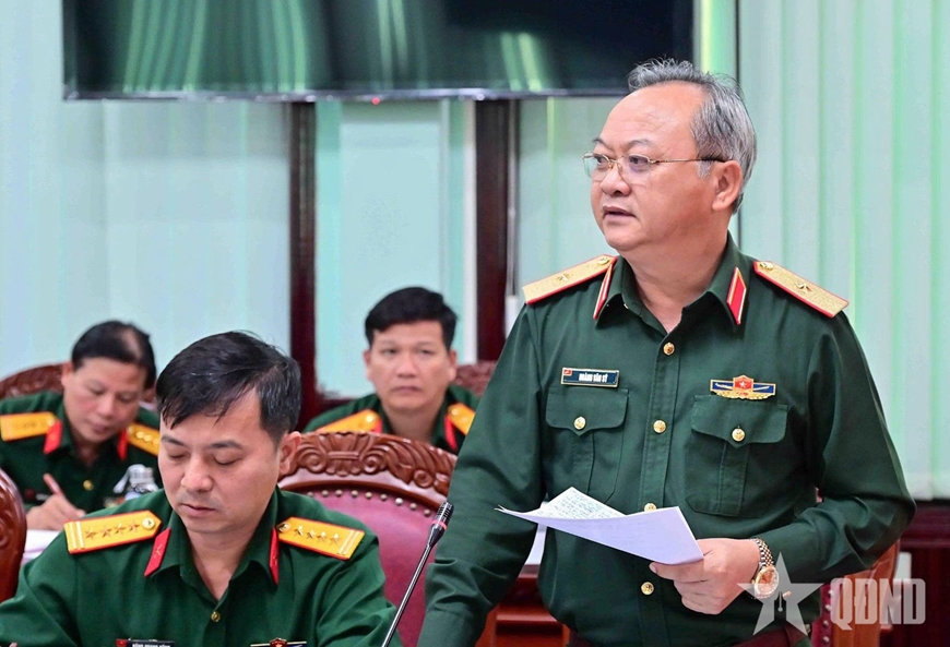 Thiếu tướng Hoàng Văn Sỹ, Phó bí thư Đảng ủy, Tư lệnh Binh đoàn 15 phát biểu tại hội nghị.