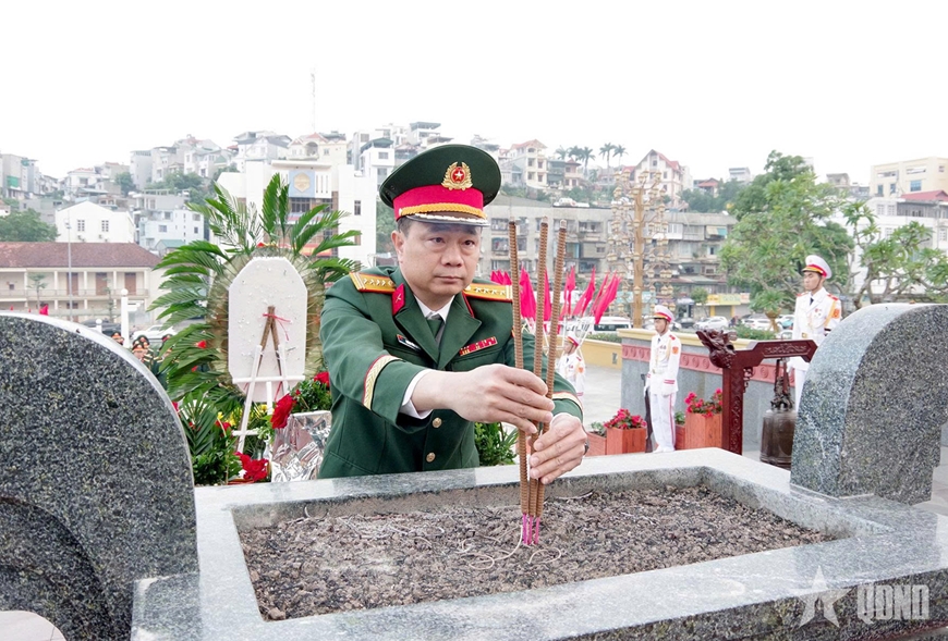 | Đại tá Hoàng Văn Thuyết dâng hoa, dâng hương tại Đài tưởng niệm các Anh hùng liệt sĩ tỉnh Quảng Ninh. |