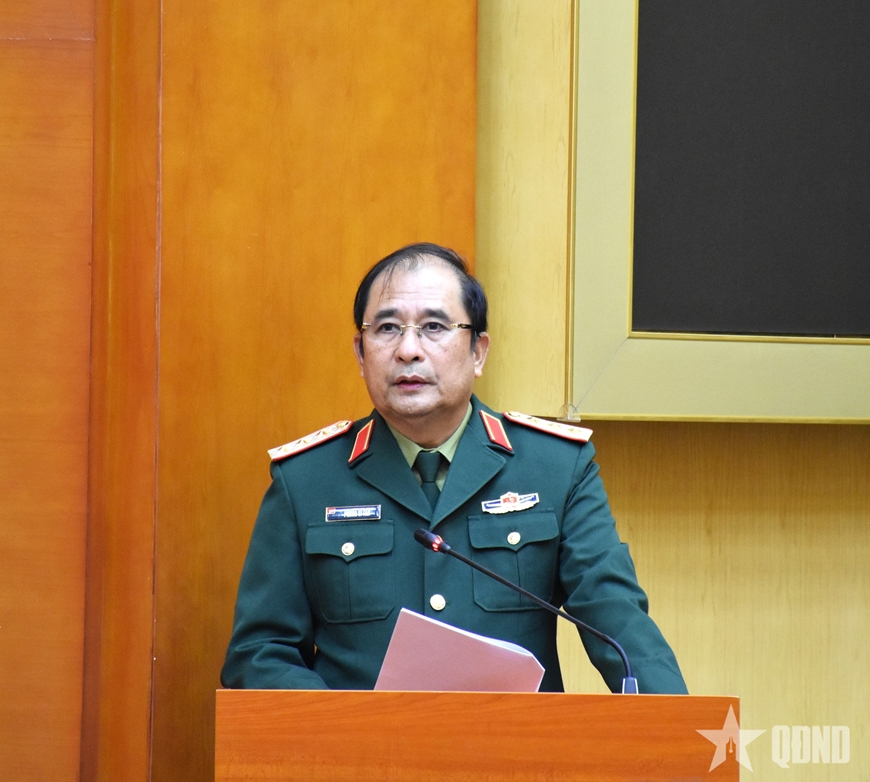 | Thượng tướng Phùng Sĩ Tấn chủ trì hội nghị. |