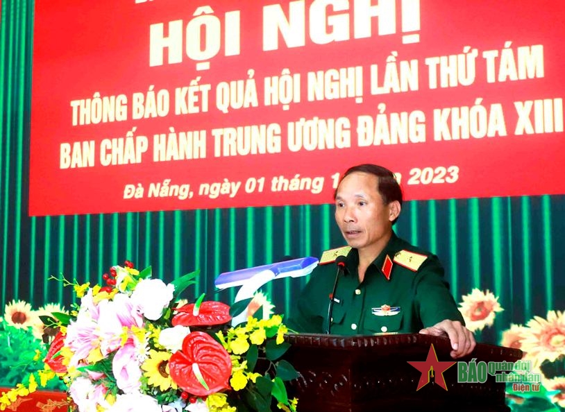 Thiếu tướng Đoàn Văn Nhất, Bí thư Đảng ủy, Phó cục trưởng Cục Chính trị Quân khu 5 thông báo kết quả Hội nghị Trung ương 8, khóa XIII.