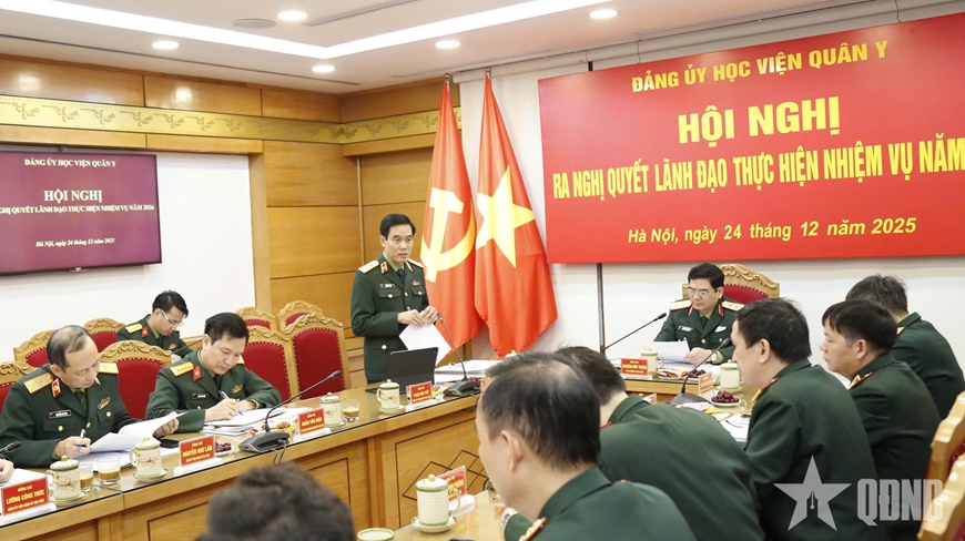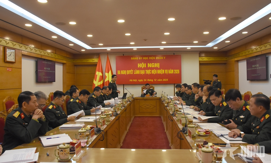 Hội nghị cũng xác định các nhiệm vụ năm 2026, trọng tâm là: Cùng với tiếp tục đổi mới, nâng cao chất lượng giáo dục đào tạo, Học viện Quân y tập trung triển khai kế hoạch mở mới chuyên ngành Nhãn khoa đào tạo trình độ thạc sĩ; tổ chức đào tạo giai đoạn 1 cấp phân đội tại Học viện; triển khai ứng dụng hiệu quả các kỹ thuật mới, chuyên sâu, đưa kỹ thuật ghép gan trở thành kỹ thuật thường quy; triển khai Trung tâm huấn luyện cấp cứu chấn thương Quốc tế tại Bệnh viện Quân y 103 theo đúng kế hoạch. Đẩy mạnh đột phá phát triển khoa học, công nghệ, đổi mới sáng tạo và chuyển đổi số, hoàn thành tốt nhiệm vụ công tác đào tạo năm 2026.