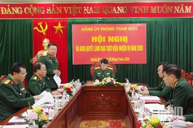 Phát biểu chỉ đạo hội nghị, Đại tá Lê Trọng Hòa, Ủy viên Ban Thường vụ Tỉnh ủy, Phó bí thư Đảng ủy Quân sự, Chỉ huy trưởng Bộ CHQS tỉnh ghi nhận những kết quả của Đảng ủy Phòng Tham mưu trong năm 2025; đồng thời đề nghị, năm 2026, Đảng ủy Phòng Tham mưu tiếp tục lãnh đạo, chỉ đạo, triển khai hoàn thành toàn diện nhiệm vụ công tác quốc phòng - quân sự địa phương; tham mưu cho Bộ CHQS tỉnh chỉ đạo cơ quan, đơn vị phối hợp, hướng dẫn thực hiện tốt các khâu, các bước trong tuyển chọn, gọi công dân nhập ngũ năm 2026; tổ chức lễ giao, nhận quân bảo đảm trang trọng, đúng quy định, an toàn. Thực hiện nghiêm Quyết định của Bộ CHQS tỉnh về ủy quyền cho Ban Chỉ huy PTKV một số quyền hạn thuộc Bộ CHQS tỉnh về nhiệm vụ quốc phòng, quân sự địa phương.