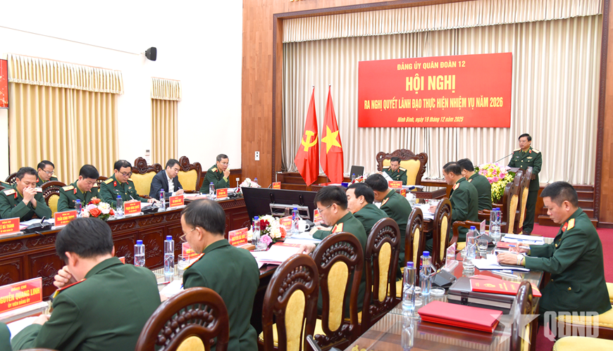 Tại hội nghị, Đảng ủy Quân đoàn 12 tập trung thảo luận, đánh giá toàn diện kết quả lãnh đạo thực hiện nhiệm vụ năm 2025; chỉ rõ những ưu điểm, hạn chế, nguyên nhân và rút ra bài học kinh nghiệm trong công tác lãnh đạo, chỉ đạo.