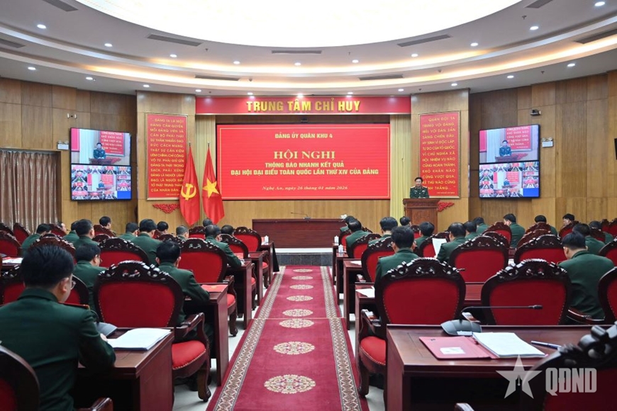 Thiếu tướng Đoàn Xuân Bường, Ủy viên Trung ương Đảng, Bí thư Đảng ủy, Chính ủy Quân khu 4 thông báo kết quả Đại hội đại biểu toàn quốc lần thứ XIV của Đảng.