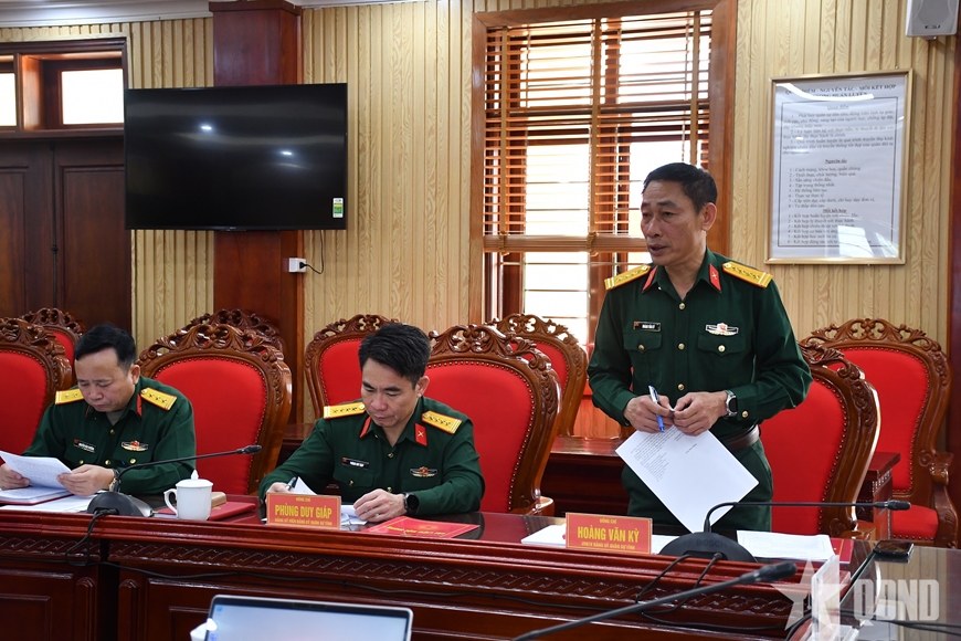 Lãnh đạo Bộ CHQS tỉnh phát biểu tại hội nghị.