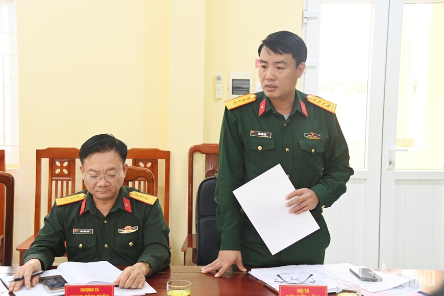 Thượng tá Nguyễn Đình Cường, Bí thư Đảng ủy, Chính ủy Trung đoàn 244 chủ trì hội nghị.