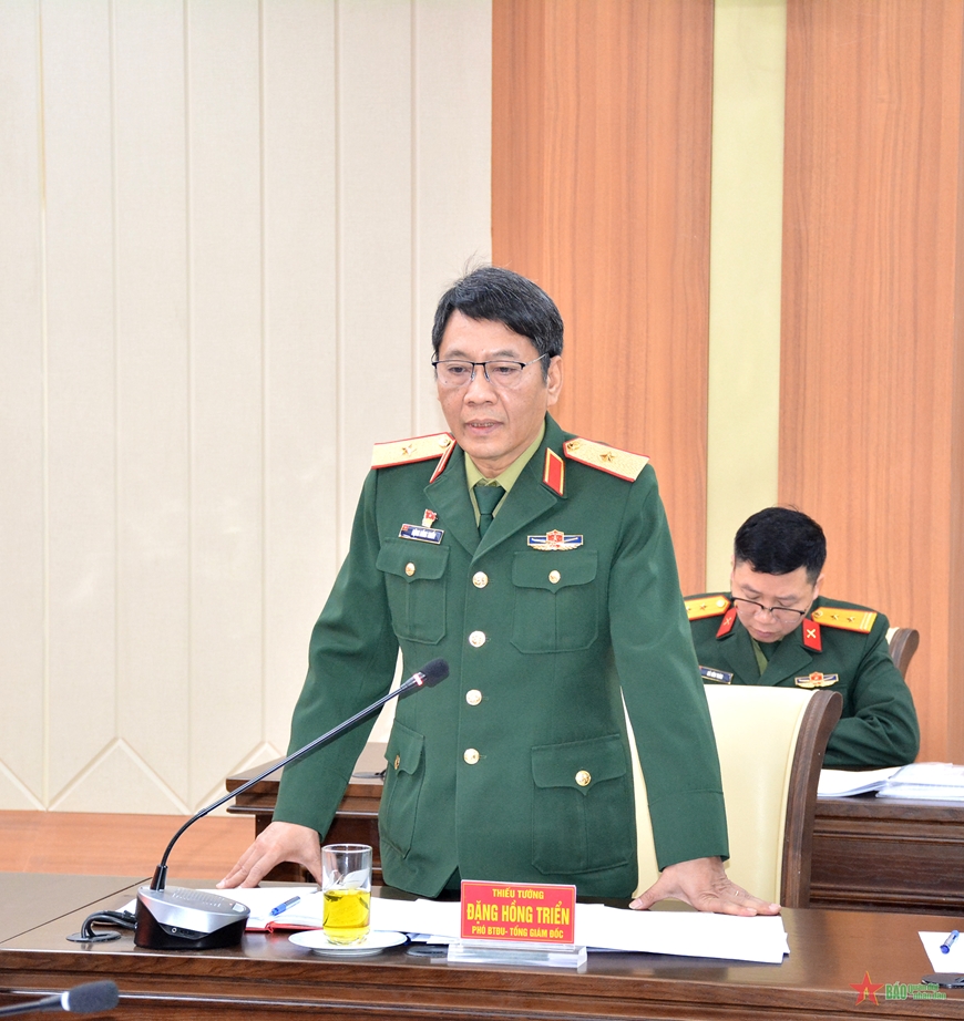 Thiếu tướng Đặng Hồng Triển, Phó Bí thư Đảng ủy, Tổng giám đốc Trung tâm Nhiệt đới Việt-Nga phát biểu tại hội nghị.