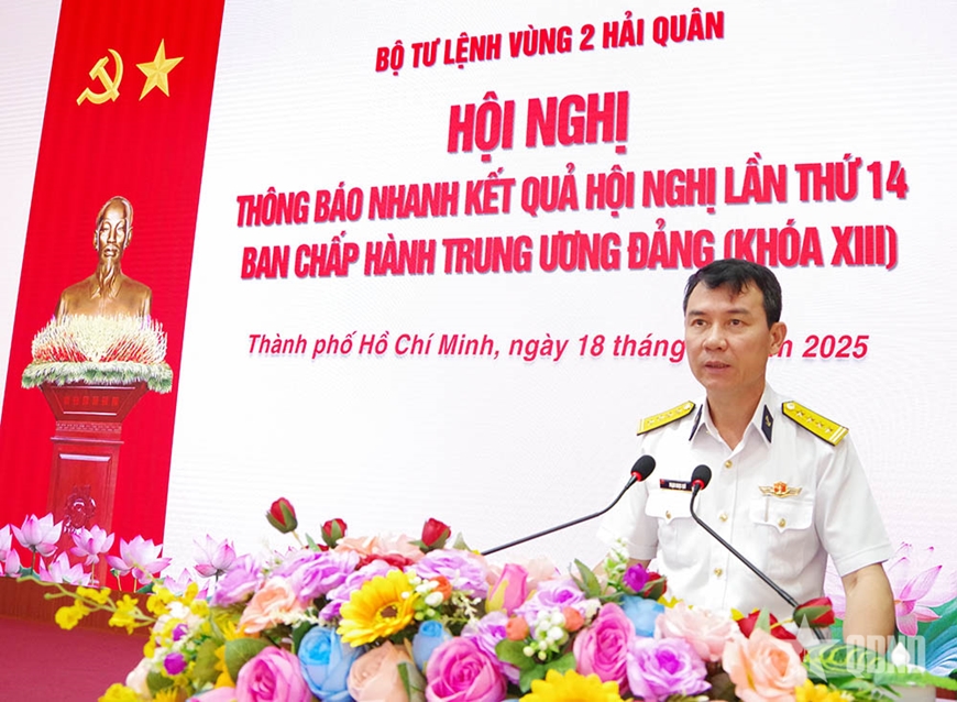 | Đại tá Phạm Ngọc Quý thông báo kết quả Hội nghị Trung ương lần thứ 14. |