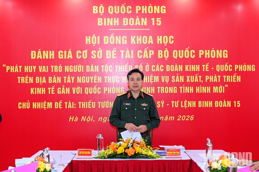 Hội đồng cũng đánh giá, đề tài có giá trị khoa học về lý luận và thực tiễn, giúp cho Đảng, Nhà nước, Quân ủy Trung ương, Bộ Quốc phòng, các cơ quan chiến lược của Bộ Quốc phòng ban hành các nghị quyết, chỉ thị, hướng dẫn; Đảng ủy, Bộ tư lệnh Binh đoàn 15 và cấp ủy, chỉ huy các cơ quan, đơn vị trên địa bàn Tây Nguyên trong lãnh đạo, chỉ đạo và tổ chức, thực hiện phát huy vai trò người dân tộc thiểu số ở các đoàn kinh tế-quốc phòng trên địa bàn Tây Nguyên thực hiện nhiệm vụ sản xuất, phát triển kinh tế gắn với quốc phòng, an ninh trong tình hình mới.