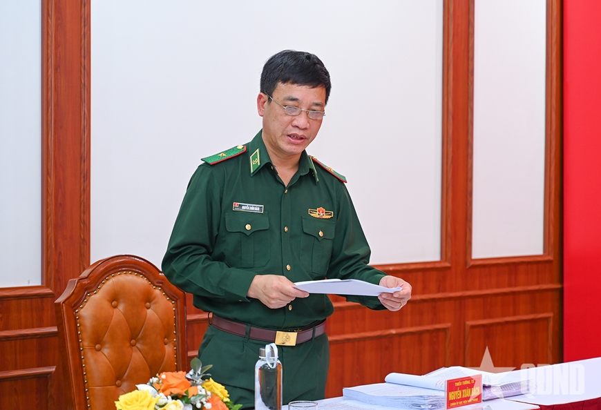 Thiếu tướng, TS Nguyễn Xuân Bách, Chính ủy Học viện Biên phòng phát biểu tại phiên họp. ẢNH: LÊ HIẾU