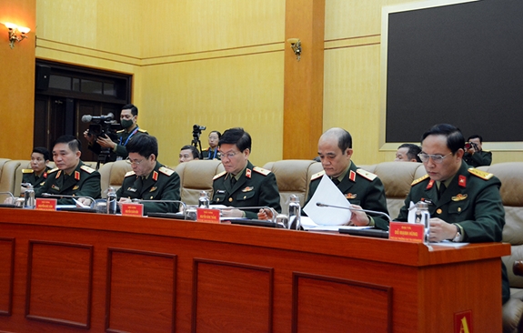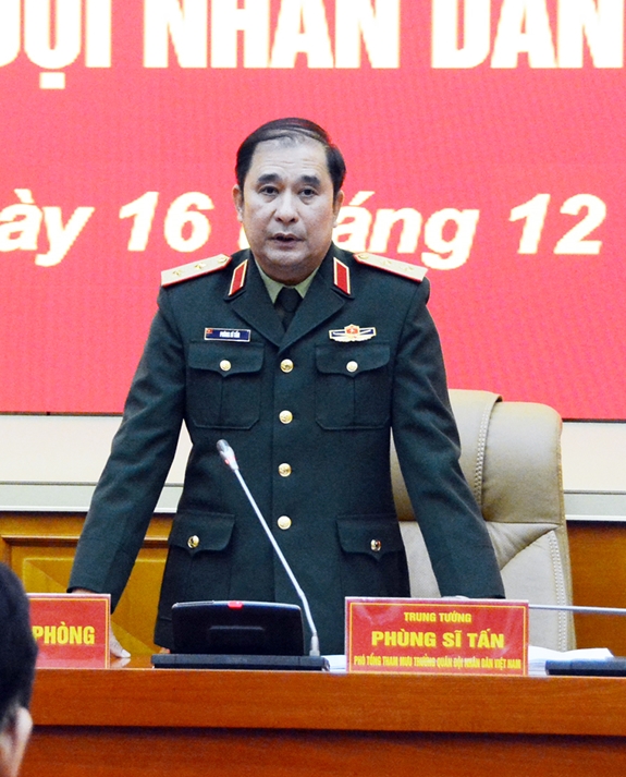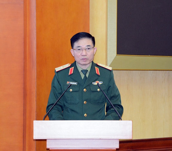 Trung tướng Phùng Sĩ Tấn phát biểu kết luận hội nghị. |