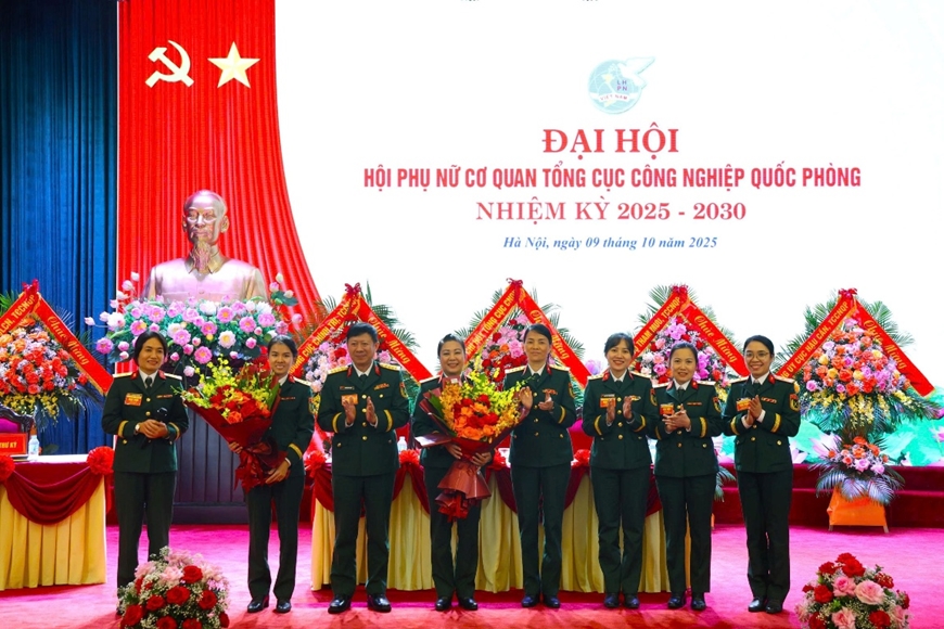 Tặng hoa chúc mừng Ban Chấp hành Hội Phụ nữ Cơ quan Tổng Công nghiệp Quốc phòng nhiệm kỳ 2025-2030 và Đoàn đại biểu đi dự Hội nghị của Tổng cục Công nghiệp Quốc phòng.
