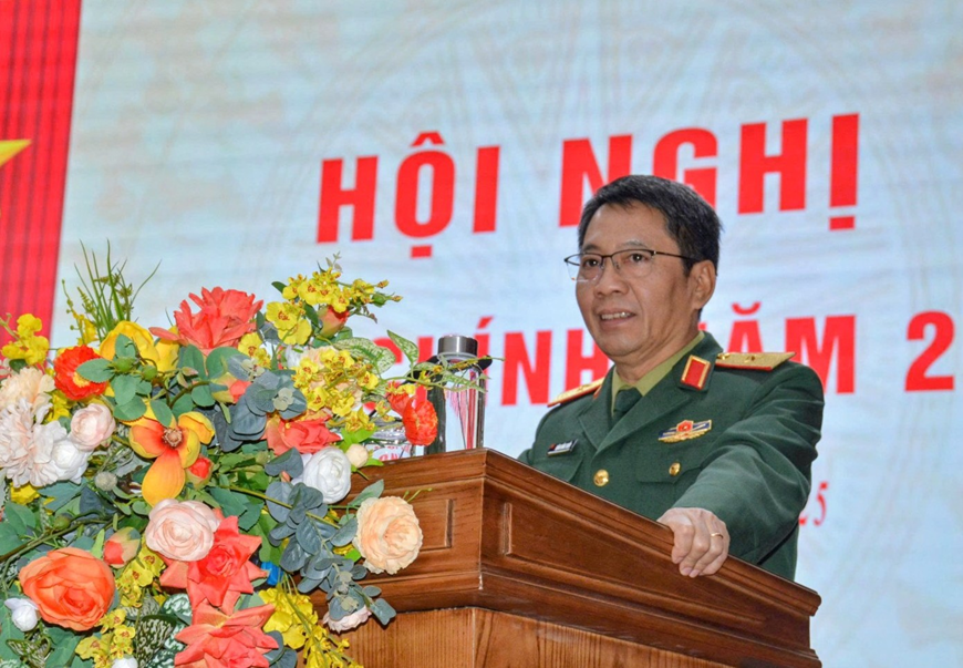 Thiếu tướng Đặng Hồng Triển trao cờ thi đua, bằng khen của Bộ trưởng Bộ Quốc phòng tặng các tập thể, cá nhân.