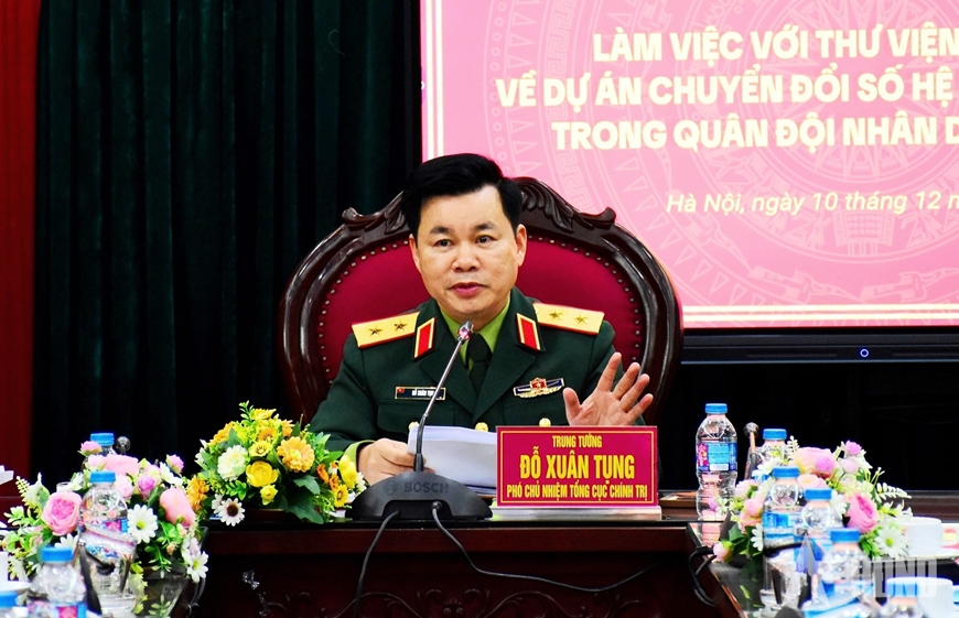 Phát biểu chỉ đạo tại chương trình làm việc, Trung tướng Đỗ Xuân Tụng cơ bản thống nhất với công tác chuyển đổi số và quá trình xây dựng hồ sơ Dự án “Chuyển đổi số hệ thống thư viện trong Quân đội nhân dân Việt Nam”. Nội dung của dự án cơ bản bám sát yêu cầu chỉ đạo của Thủ trưởng TCCT, phù hợp với định hướng của Bộ Quốc phòng về phát triển hạ tầng thông tin, ứng dụng công nghệ số trong hoạt động thư viện, cũng như xây dựng hệ sinh thái số ngành công tác Đảng, công tác chính trị (CTĐ, CTCT) giai đoạn 2026-2028.