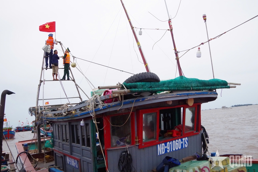 Tổ công tác cũng đến 100 tàu cá đang neo đậu tại khu vực cảng xã Giao Phúc (tỉnh Ninh Bình), cấp phát hơn 300 tờ rơi, tờ gấp, sổ tay pháp luật, 250 cờ Tổ quốc và trực tiếp tuyên truyền pháp luật cho ngư dân.