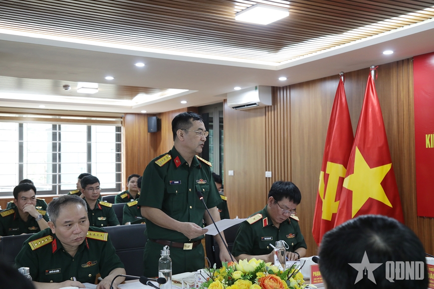 | Đại tá Lê Anh Sơn, Phó cục trưởng Cục Quản lý công nghệ (Tổng cục Công nghiệp Quốc phòng) báo cáo tiến độ nghiên cứu, chế tạo xe tăng hạng nhẹ T-1. |