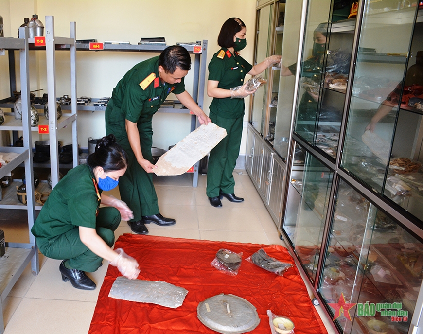 | Cán bộ, nhân viên Bảo tàng Quân khu 4 bảo quản các kỷ vật và di vật của liệt sĩ. |