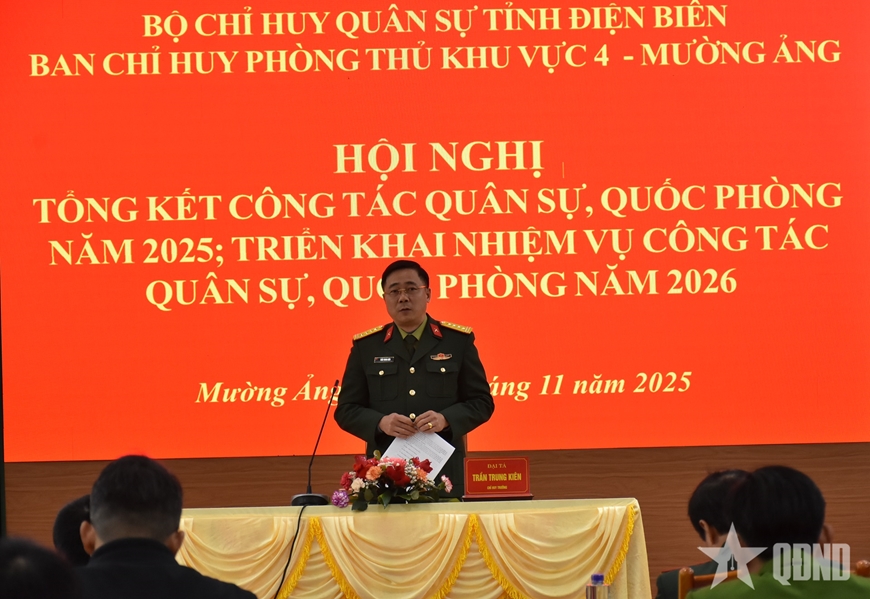 | Đại tá Trần Trung Kiên, Chỉ huy trưởng Ban Chỉ huy PTKV 4 - Mường Ảng chủ trì Hội nghị Tổng kết công tác quân sự, quốc phòng năm 2025. |