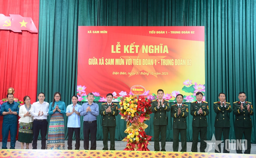 Tại lễ kết nghĩa, Đảng ủy Tiểu đoàn 1 và Đảng ủy xã Sam Mứn, tỉnh Điện Biên đã cùng nhau trao đổi, thông báo tình hình phát triển kinh tế - xã hội, bảo đảm an ninh chính trị, trật tự an toàn xã hội, công tác quân sự, quốc phòng, xây dựng đảng của hai đơn vị.