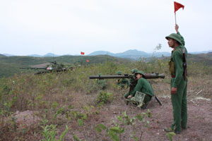 Đơn vị H09, Đoàn Chiến Thắng (Binh đoàn Quyết Thắng) vừa thực hành diễn tập chỉ huy, cơ quan một bên hai cấp có bắn đạn thật...