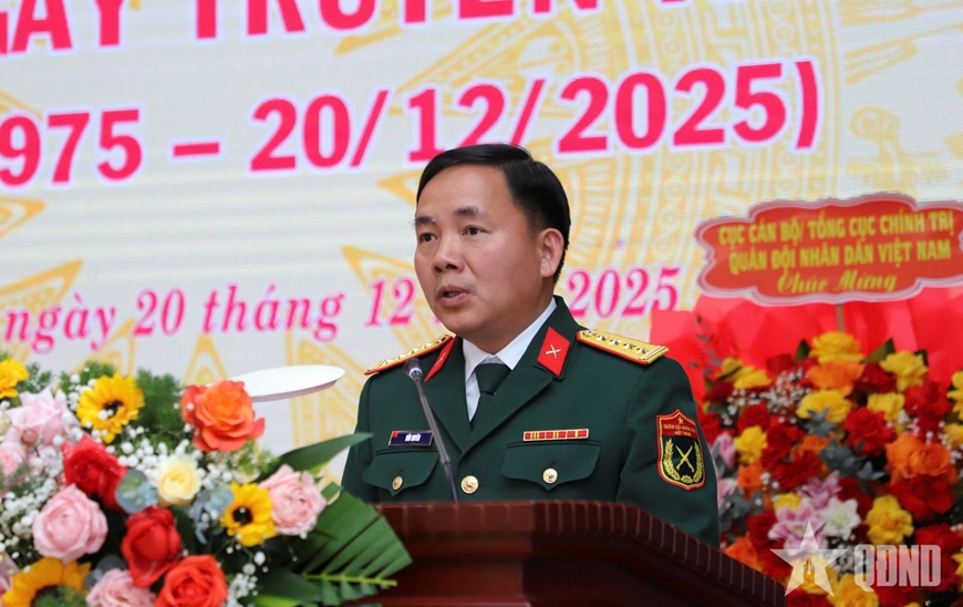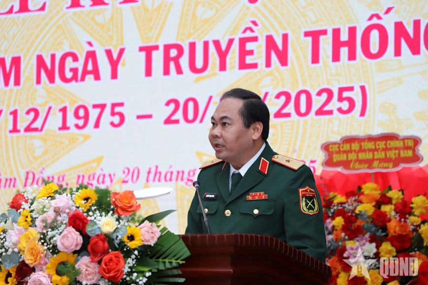 | Thiếu tướng Nguyễn Thanh Phong, Phó chính ủy Học viện Lục quân phát biểu tại lễ kỷ niệm. |