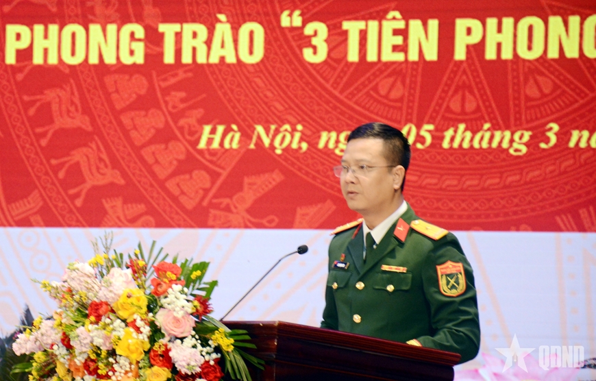 | Đại diện Ban chấp hành Đoàn cơ sở Đoàn Nghi lễ Quân đội trình bày nội dung phát động. |