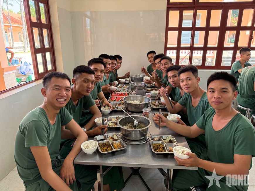 | Bộ đội phấn khởi với bữa cơm đón chào năm mới 2026. |
