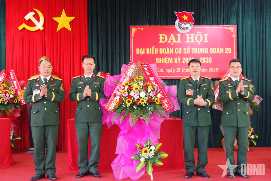 Ban chấp hành Đoàn cơ sở Trung đoàn thông tin 29 nhiệm kỳ 2025-2030 ra mắt đại hội. |
