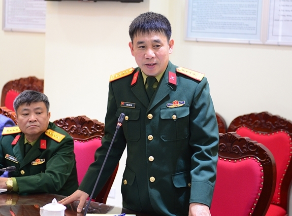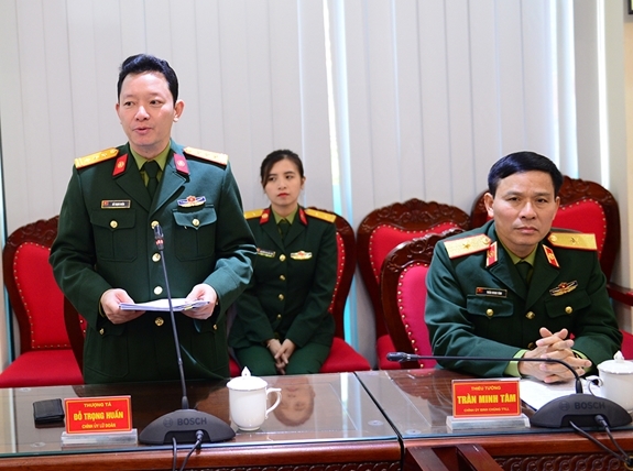 Thượng tá Đỗ Trọng Huấn cảm ơn sự quan tâm, giúp đỡ của Binh chủng Thông tin liên lạc và Báo QĐND đối với đơn vị. |