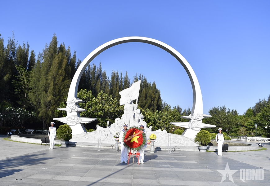| Đoàn công tác làm lễ dâng hương tại Khu tưởng niệm Chiến sĩ Gạc Ma (Khánh Hòa) tưởng nhớ 64 cán bộ, chiến sĩ đã anh dũng hy sinh bảo vệ chủ quyền biển đảo năm 1988. |