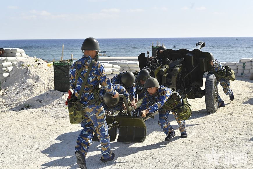 | Cán bộ, chiến sĩ trên đảo tổ chức diễn tập. |