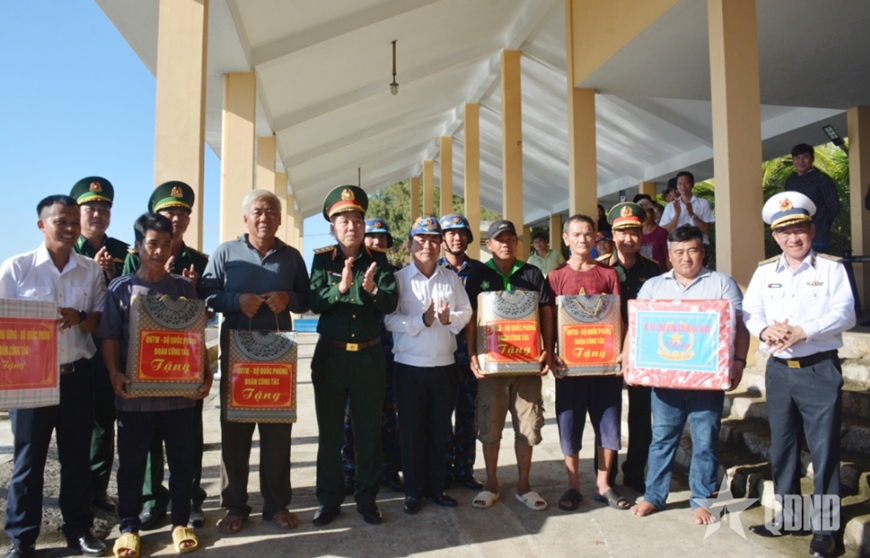 Thượng tướng Nguyễn Văn Gấu cùng lãnh đạo đoàn công tác và đại diện các ban, bộ, ngành trung ương, địa phương, cùng chỉ huy các cơ quan, đơn vị đã tặng quà, động viên cán bộ, chiến sĩ, nhân dân và các lực lượng đã thực thi nhiệm vụ trên các đảo.